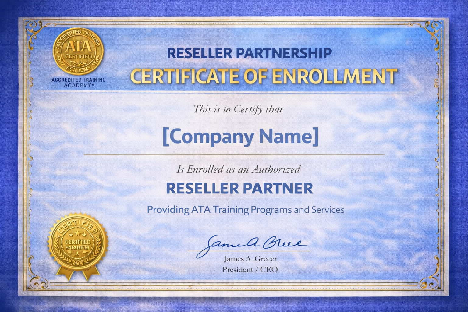 ** Reseller Partnerships provide commissions, discounted pricing and other revenue incentives for training programs, software implementation and other products & services offered by the Accredited Training Academy.